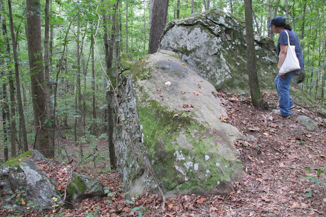 If you look at these photos, you might think we are in the North Georgia mountains. We are not, this is actually just a few miles from a shopping mall which is just next to a very busy interstate highway. This is on one of the trails at Arabia Mountain! You see, we don't just walk UP the mountain, we walk on as many trails as we can. (Once again, I will tell you that Arabia Mountain is really a monadnock, but hey, it is easier to call it a mountain!)